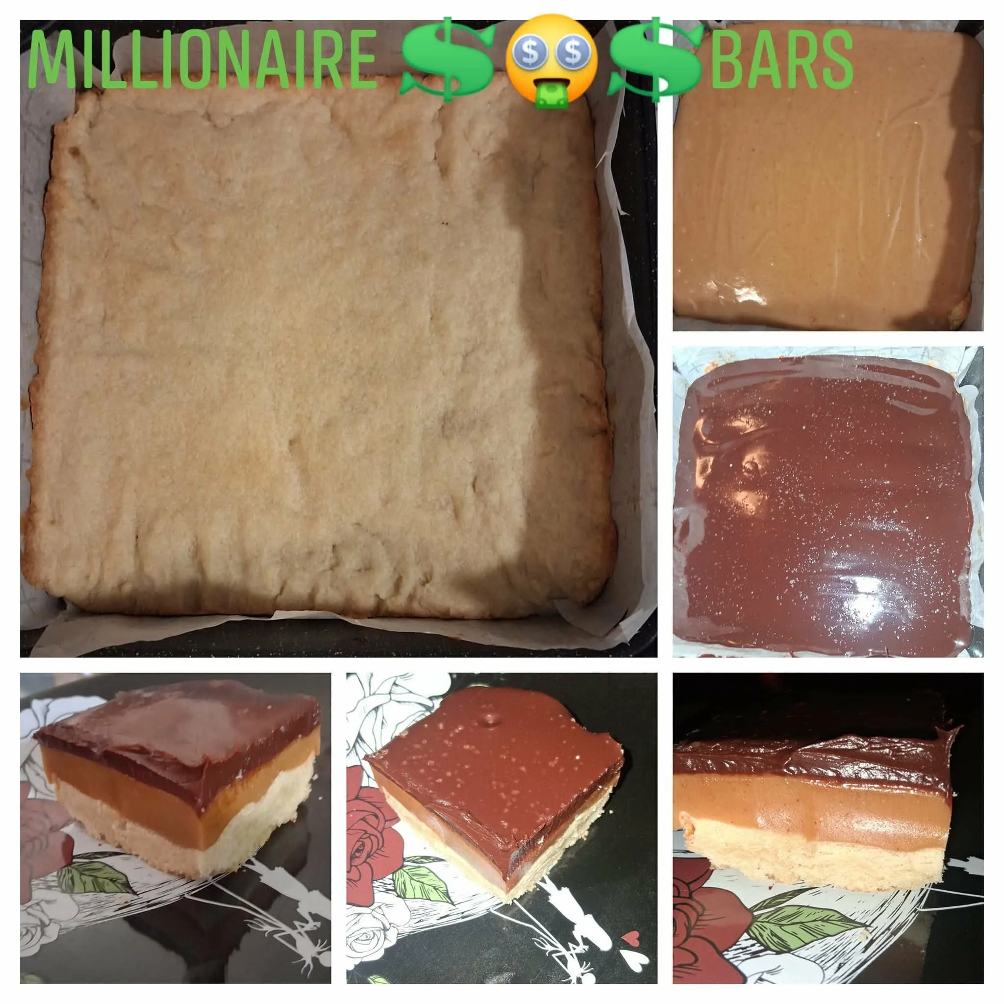 Millionaire Bars that are chocolate ganache, caramel, and shortbread